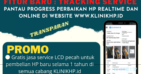 Hai Kak, KLINIKHP.id memperkenalkan fitur baru untuk memantau progress perkembangan perbaikan handphone kakak. Dengan fitur ini kami akan membantu kakak dalam penanganan perbaikan handphone dengan lebih baik dan transparan. Kami akan menyajikan informasi realtime dan online mengenai sejauh mana proses perbaikan yang telah kami lakukan, informasi tambahan berupa foto visual perbaikan itu sendiri, part yang digunakan, treking resi pengiriman dan pilihan metode pembayaran.